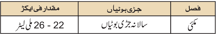 وقت استعمال: فصل کو پہلا پانی لگانے کے بعد جب کھیت تر وتر حالت میں ہو اور جڑی بوٹیاں اگ چکی ہوں تو سپرے کریں۔