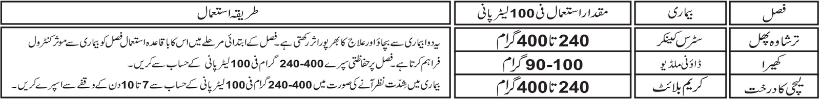 نوٹ: بہتر نتائج کیلئے دوا کو بیماری کے آثار ظاہر ہوتے ہی اسپرے کریں۔